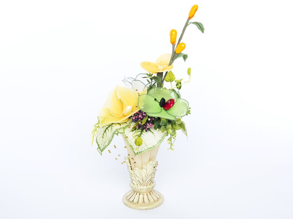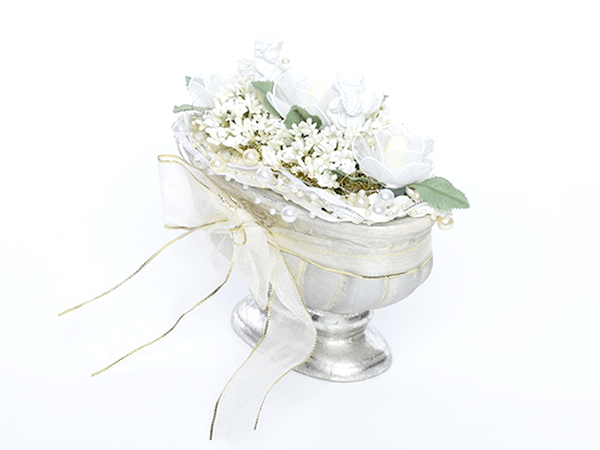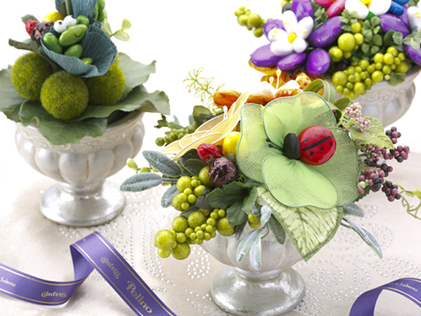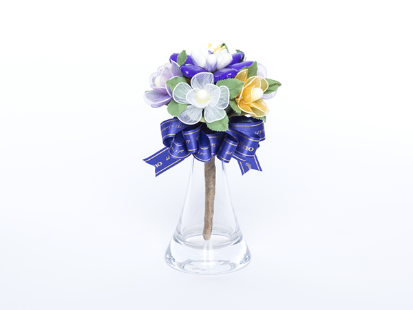 ペリーノ社でハンドメイドされた愛らしい一輪一輪の花をブーケにしたり、小鉢に差しアレンジメントしたり、コンフェッティブーケを身近に楽しんでいただけるよう様々な作品をご用意しました。